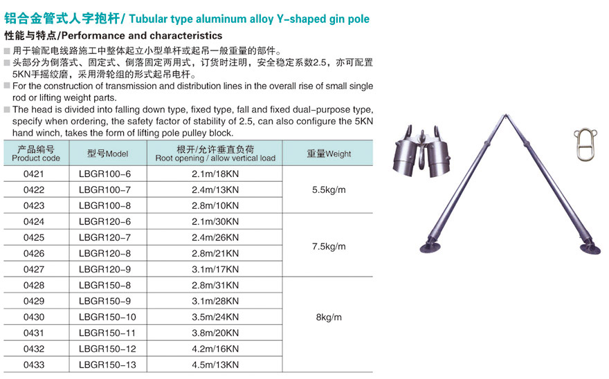 产品名称: 铝合金管式人字抱杆