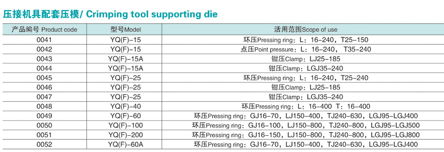 产品名称: 压接机具配套压模具